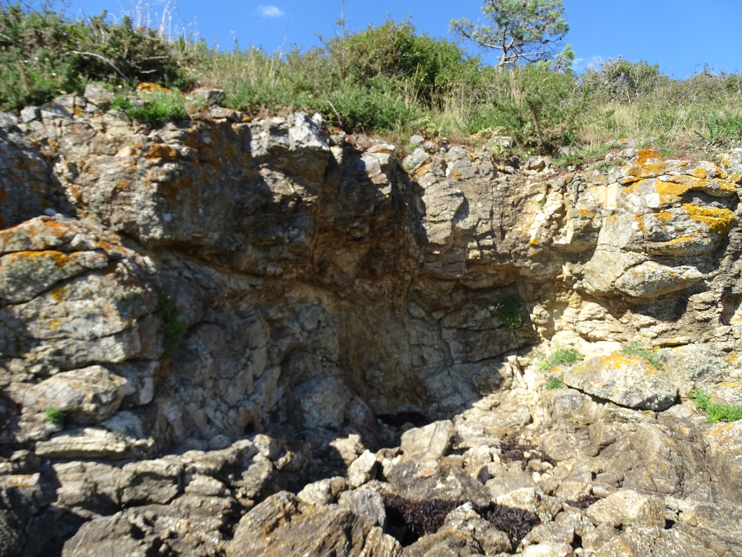 Problème : ces câlins marins, par leurs baisers salés, ou bien leurs furieuses embrassades, comme lors de la tempête Wolfgang [3]La tempête Wolfgang a notamment sévi sur les côtes bretonnes avec des rafales de 51 nœuds (95 km/h) à l’entrée du Golfe du Morbihan, et de 35 nœuds à l’intérieur (65 km/h, lors de la nuit du 29 au 30 juillet 2019, usant les granits, les couches sableuses et terreuses, bref tout ce qui forme le sol et que le géographe Jean Demangeot nomme pédocénose [4]De pédo, sol et cénose, commun. Cf : DEMANGEOT Jean, Les milieux « naturels » du globe, Armand Collin, p 4. . L’érosion qui en résulte fait reculer les côtes, ce qui a deux conséquences : d’une part, la superficie de l’île diminue – mouvement augmenté par l’élévation du niveau de la mer – [5]Certains climatologues prévoient une augmentation moyenne du niveau de la mer de 1 mètre d’ici 2100.. D’autre part, certains éléments d’urbanisme se retrouvent menacés à plus ou moins long terme. Le cas typique est l’ancienne maison construite près du rivage avec une côte qui se rapproche de plus en plus.