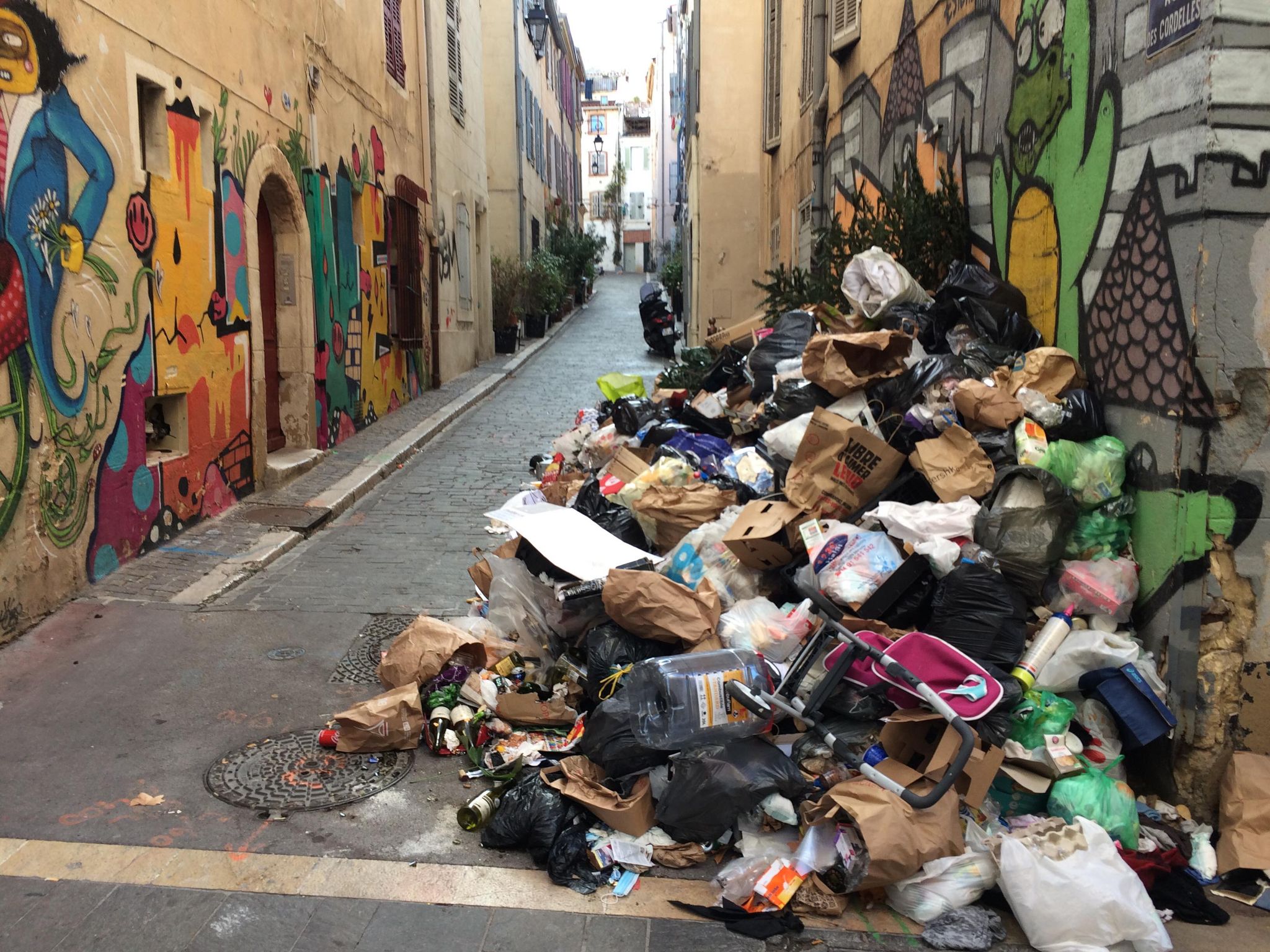 Il faut dire que la situation depuis deux semaines s’aggravait continuellement. Entre la prolifération des rats, les odeurs nauséabondes et la mise à feu des tas d’ordures dans certains quartiers, s’ajoutaient les vents forts de ces derniers jours qui transportaient plusieurs semaines de consommation alimentaire entassées dans les rues dans la belle mer bleue du littoral marseillais. Pour une ville passée verte en juillet, il y a de quoi grincer des dents.